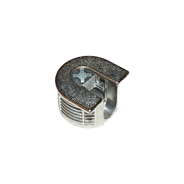 The fixed shelf male connector, together with the fixed shelf female connector, creates a strong and stable connection between a fixed shelf and the side panel of a cabinet. This screw is screwed into the cabinet panel and fits precisely into the fitting of the fixed shelf female connector, allowing the shelf to snap securely in place without visible screws.